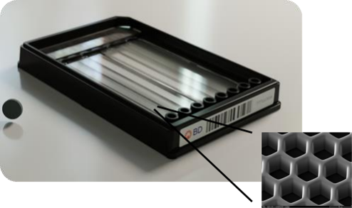 原理:BD Rhapsody微孔板原理–自然沉降分离捕获单细胞,对细胞无损伤 BD Rhapsody磁珠(DNA分子标签) – 在细胞水平,基因水平上同时进行精准标记,实现单细胞定量分析